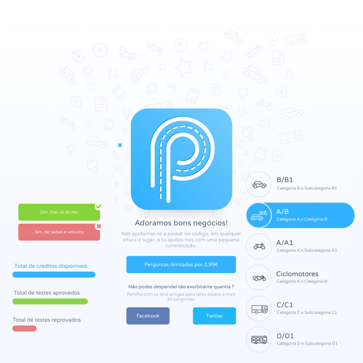 Our challenge was to create a digital product that would allow digitising the preparation for the official driving test and thus solve this limitation. Piloto wanted to become the best way to make students feel fully prepared for their driving theory test.